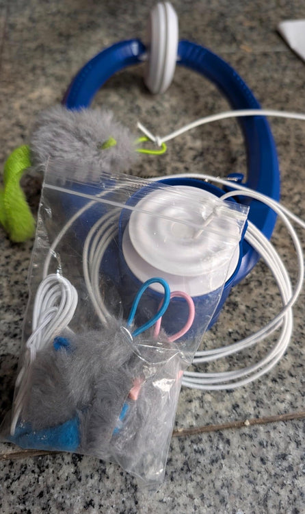 Yes, we include two spare strings and extra toy mice to swap out as needed.